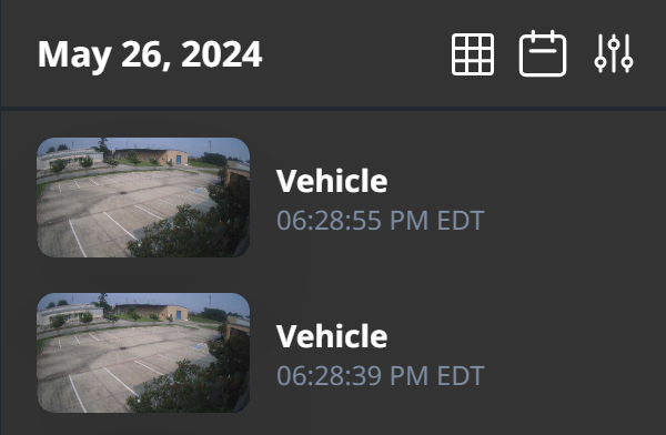 - The dots on the timeline are events, such as a person or vehicle moving.
