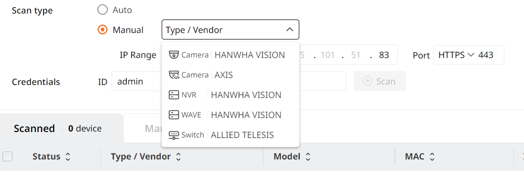 NOTE: Since Auto mode does not guarantee 100% detection of all devices, use Manual mode for devices not detected by Auto mode.In this example, we are scanning for WAVE servers.