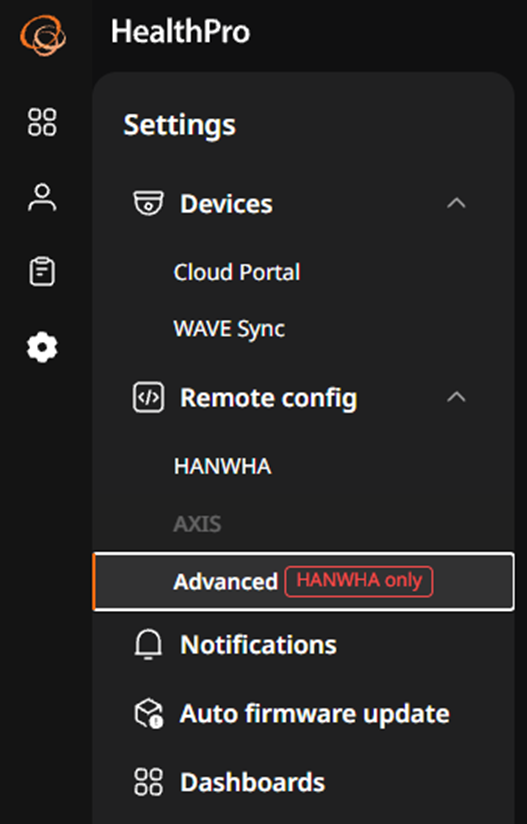 From HealthPro version 1.8 and up, you can send SUNAPI CGI commands from HealthPro via HealthPro Bridge to licensed Hanwha Vision cameras, or directly to Direct-to-Cloud cameras.