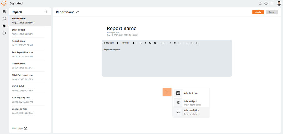 SightMind enables seamlessly importing analytics results into the Report module. This feature streamlines the workflow from data analysis to documentation. Users can convert analytics insights into professional reports with PDF export, sharing capabilities, and email distribution options.
