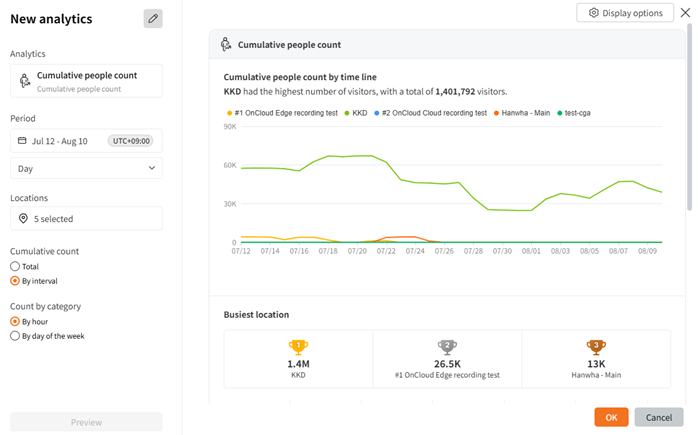 - To add only certain types of charts, enable/disable the charts you want in Display options.