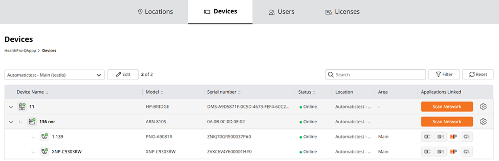 - In the HealthPro dashboard, select a location to view information about the NVRs and cameras.