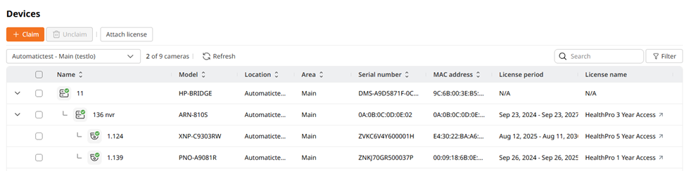 The NVR and its cameras are now in Cloud Portal and need to be claimed and licensed in HealthPro.