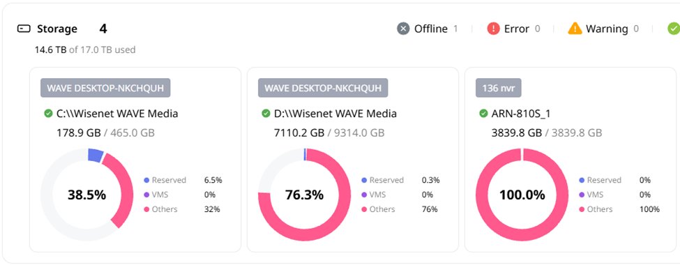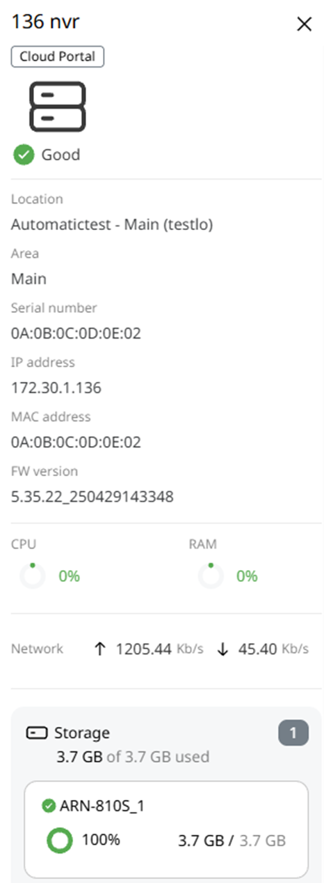 NOTE: NVRs do not report their CPU and RAM utilization, so these are presented as