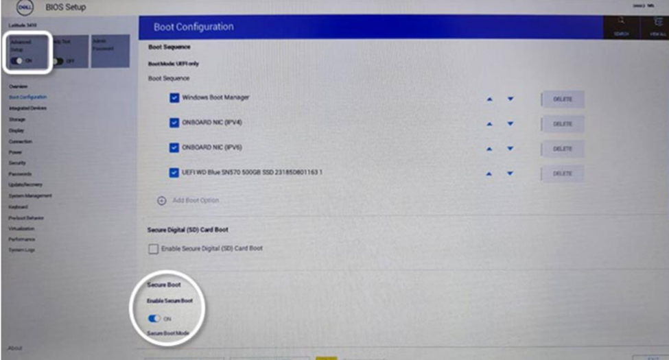 - Locate Disable SecureBoot (often under Security > Boot, or Advanced settings) and toggle the switch to OFF.