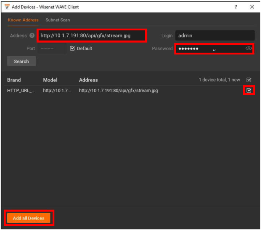 - In the Address field, enter the stream URL from the HALO Smart Sensor interface.