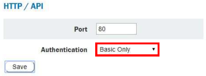 - In the HTTP / API section, select Basic Only from the Authentication drop-down menu.