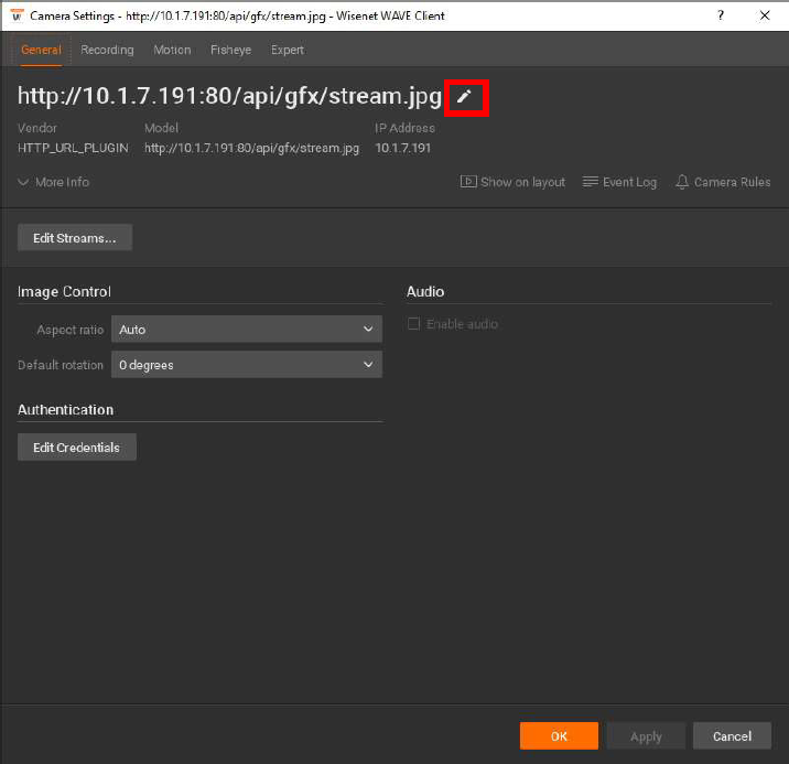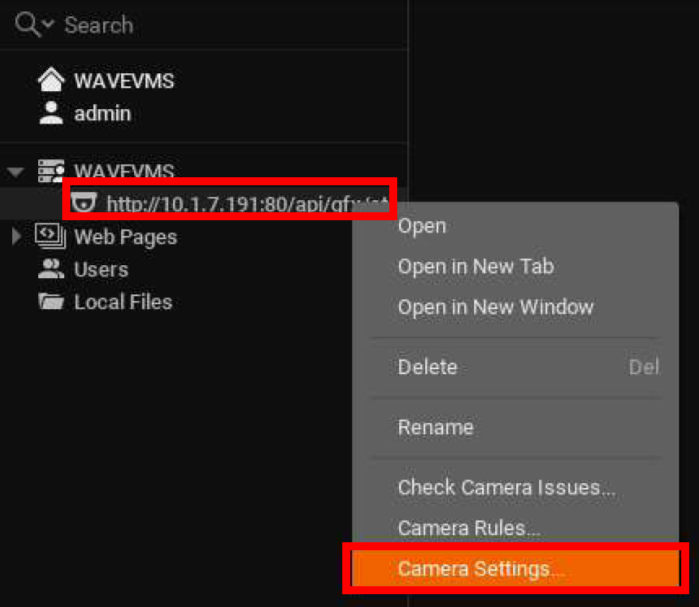 - In the navigation tree on the left, right-click the HALO Smart Sensor, then click Camera Settings.