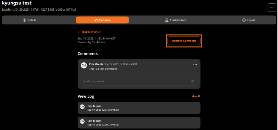 When investigating an incident, you can add evidence in the form of comments or files. You may also want to delete unnecessary evidence from an incident.