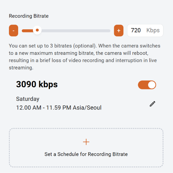 NOTE: You can toggle this scheduled recording bitrate on and off, and edit