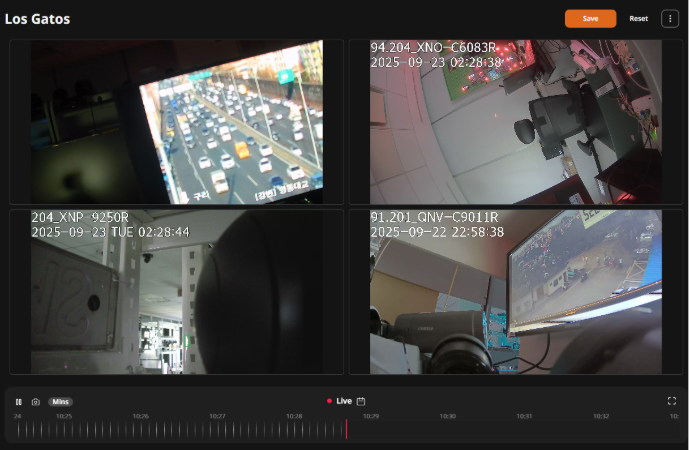 The next time you log in, the Cameras page displays the Los Gatos layout.