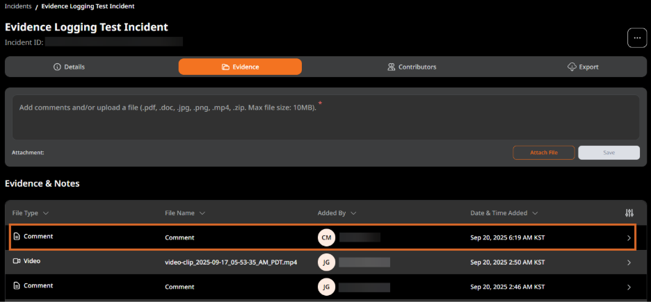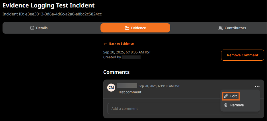After a comment is added to an incident, that comment can be edited.