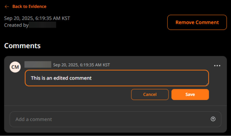 - Click Evidence, then click the comment to edit.