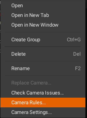 NOTE: Alternatively, the user can right-click on the camera and click on Camera Rules.