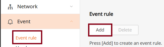- Now to create Event Rule to use Handover. Select Event Rule > Add.