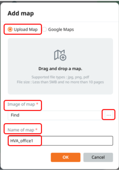 - Click the three-dot menu to the right under the Image of map to add a floor plan file.