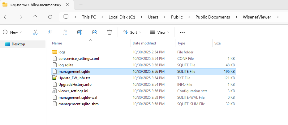 - Navigate to C:\Users\Public\Documents\WisenetViewer.