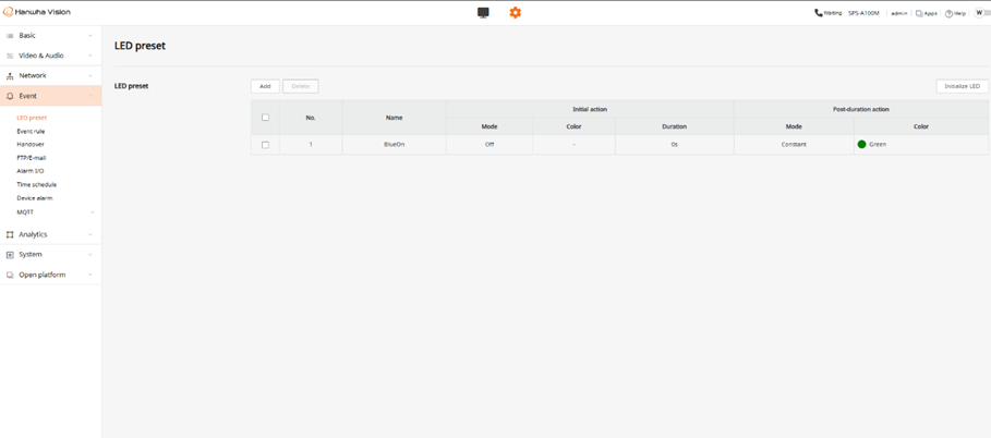 This article describes how to configure LED commands using the Hanwha SPS-A100M Audio Beacon API.