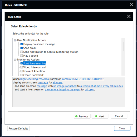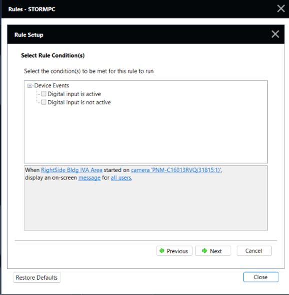 - Scroll down the displayed list and check the box next to ONVIF event started, then click Next.