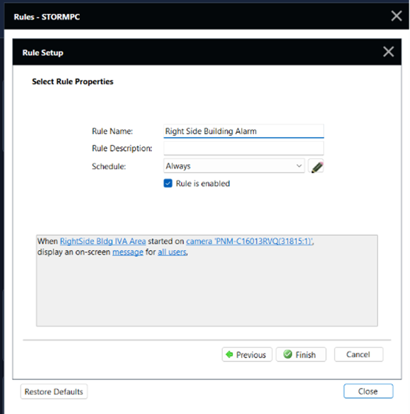 - Enter a Rule Name and click Finish.