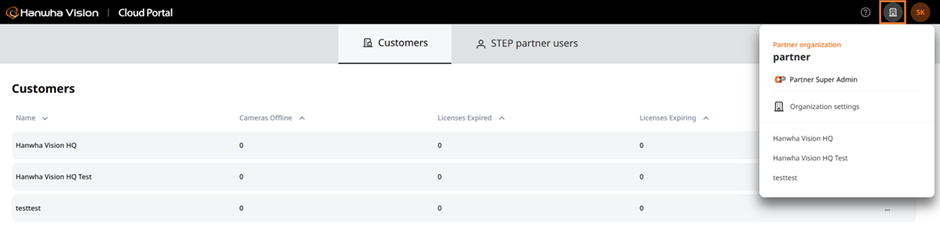 Key Functionality: An account affiliated with a Partner Organization can view a list of accessible Customer Organizations in the Working ORG Pop-up and switch their Working ORG to any of them.
