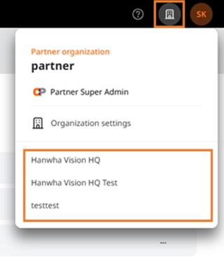Partner accounts can use Multi-ORG functionality by switching to the Customer Organizations they manage via the Working ORG Pop-up.