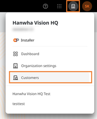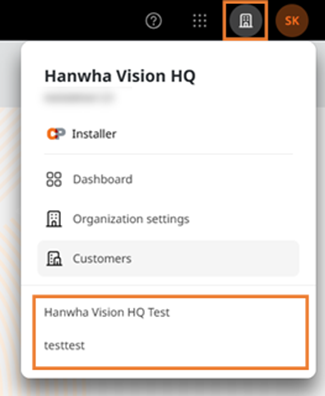 Switching: The bottom section of the Pop-up lists other accessible Customer ORGs, allowing the user to switch freely between them.